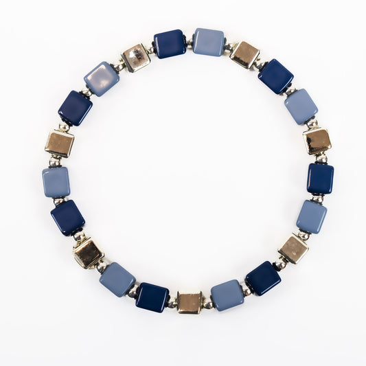 Brățară elastică cu mărgele cubice și biluțe - Albastru