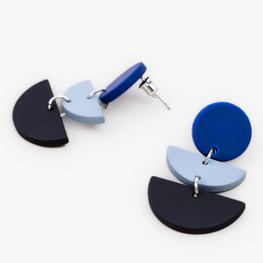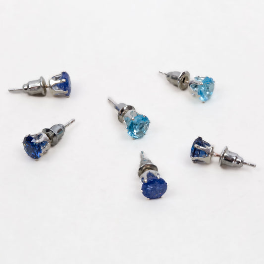 Set cercei mici cu pietre rotunde în nuanțe, 3 perechi - Albastru