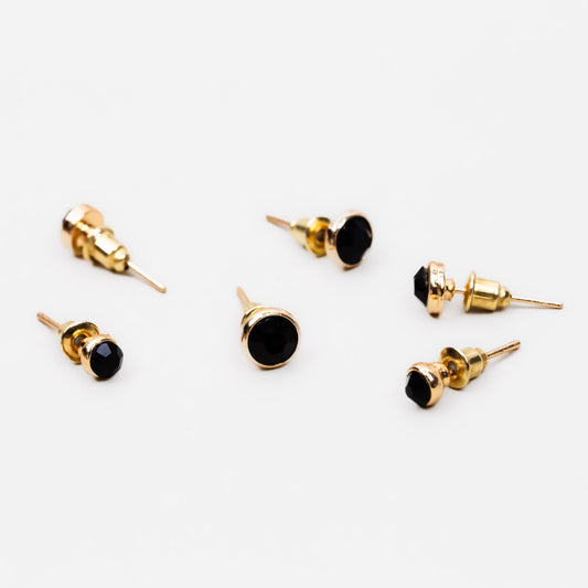 Set cercei mici cu pietre rotunde delicate, 3 perechi - Auriu, Negru