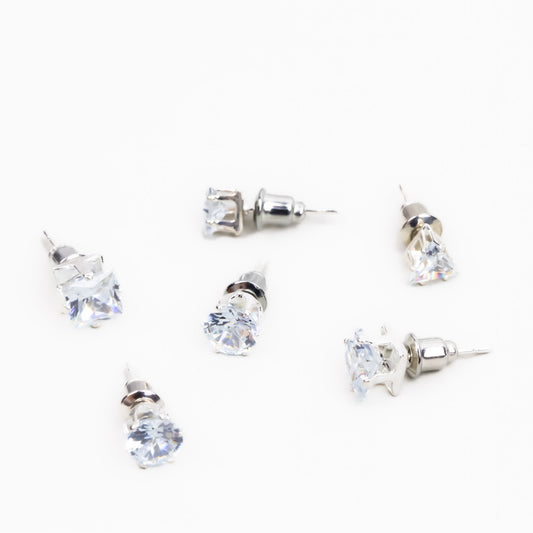 Set cercei mici , pietre cu forme geometrice, 3 perechi - Argintiu Light