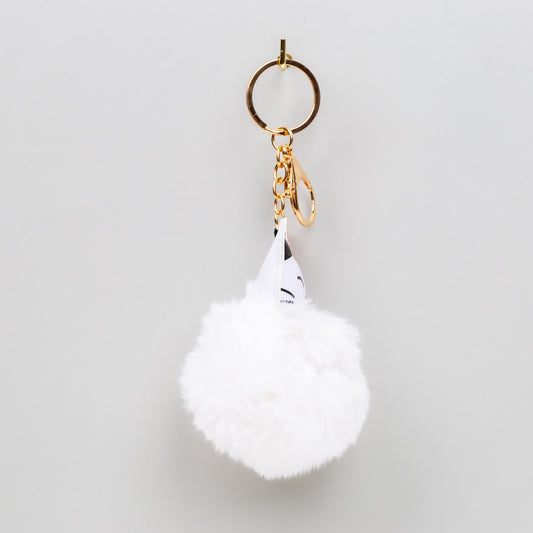 Breloc chei pufos în formă de inimă cu animal print - Alb maro