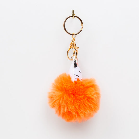 Breloc chei pufos în formă de inimă cu animal print - Maro