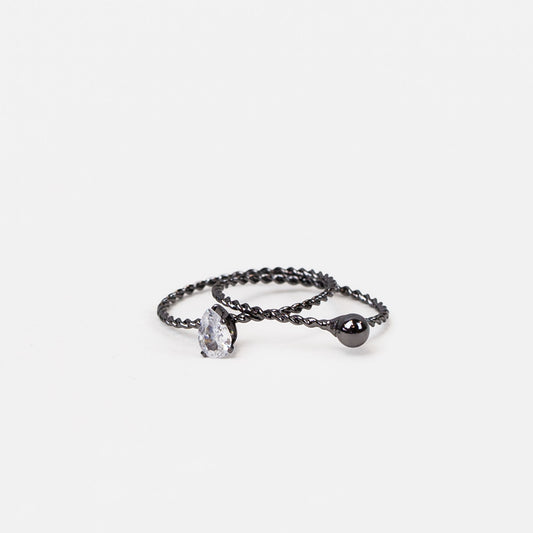 Set 2 inele subțiri unite cu piatră și biluță - Negru