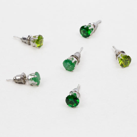 Set cercei mici cu pietre strălucitoare în nuanțe, 3 perechi - Verde Mix