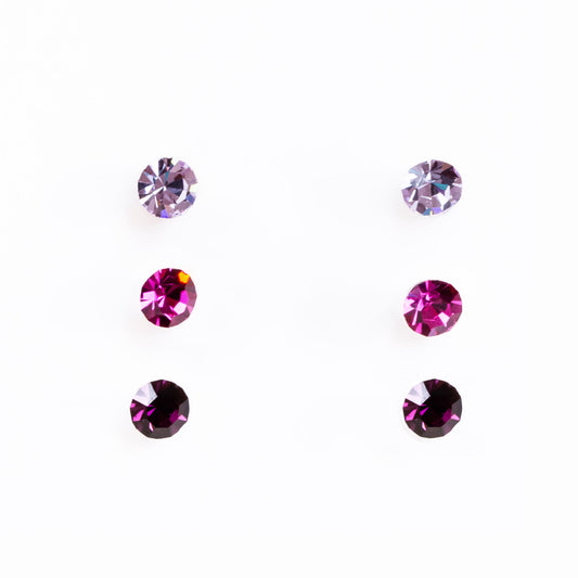 Set cercei mici cu pietre strălucitoare în nuanțe, 3 perechi - Roz Mix
