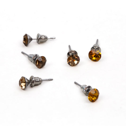 Set cercei mici cu pietre strălucitoare în nuanțe, 3 perechi - Șampanie Mix
