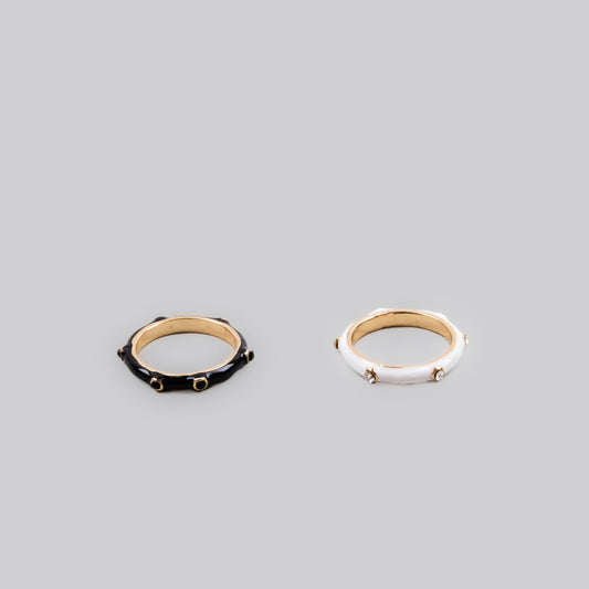 Set 2 inele subțiri cu pietre delicate - Negru, Alb