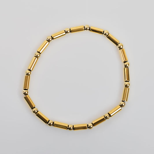 Brățară elastică cu secțiuni cilindrice și biluțe - Auriu