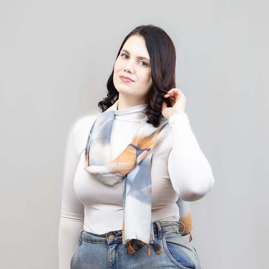 Eșarfă comodă și aerată cu imprimeu mozaic abstract, 180 x 85 cm - Santal