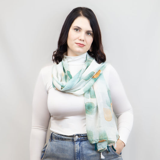 Eșarfă comodă și aerată cu imprimeu mozaic abstract, 180 x 85 cm - Verde