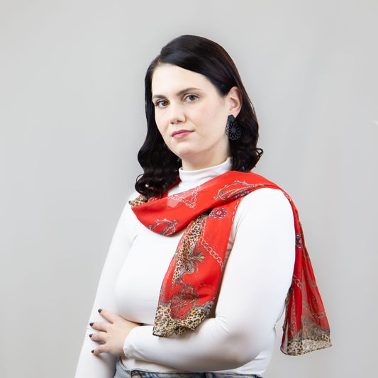 Eșarfă fină cu efect de mătase, imprimeu animal print royal, 160 x 45 cm - Roșu