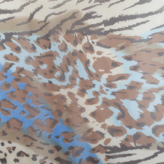 Eșarfă fină cu efect de mătase, imprimeu animal print royal, 160 x 45 cm - Albastru
