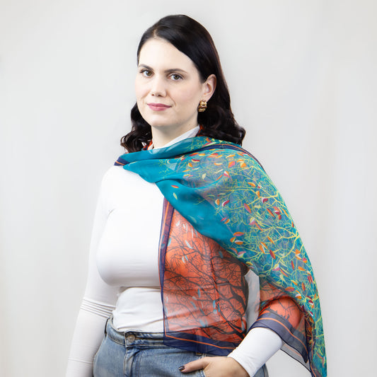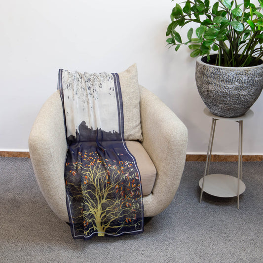 Eșarfă fină cu efect de mătase, imprimeu copacul nopții, 160 x 50 cm - Magical Place