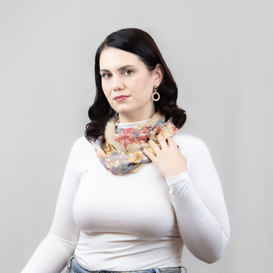 Eșarfă fină cu efect de mătase, imprimeu cu flori curgătoare, 160 x 50 cm - Bej Calm