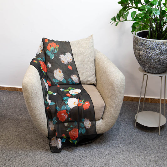 Eșarfă fină cu efect de mătase, imprimeu cu trandafiri classy, 160 x 50 cm - Negru
