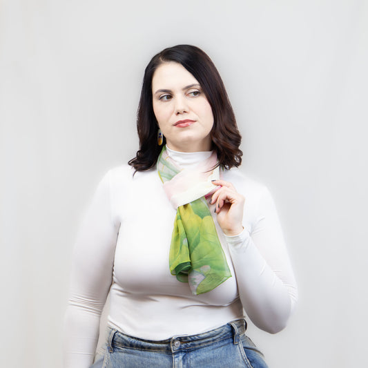 Eșarfă fină cu efect de mătase, imprimeu copac inflorit, 160 x 50 cm - Fresh Vibes