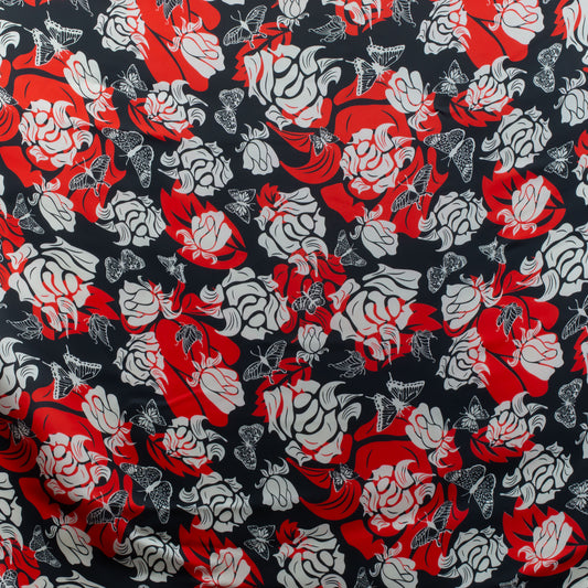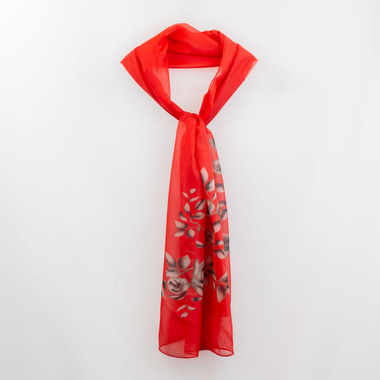 Eșarfă fină cu efect de mătase, imprimeu trandafiri mono, 155 x 45 cm - Roșu