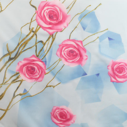 Eșarfă fină cu efect de mătase, imprimeu trandafiri roz, 150 x 50 cm - Albastru
