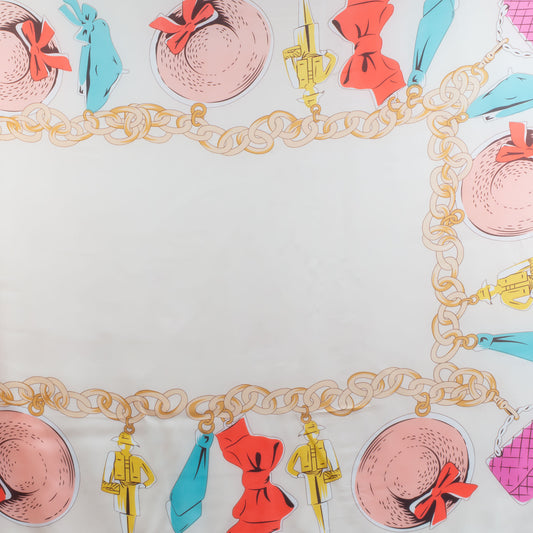 Eșarfă fină și deosebită cu efect mătase, imprimeu cu accesorii fashion, 180 x 90 cm - Peach