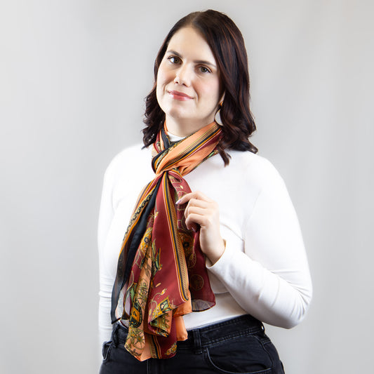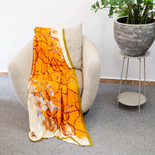 Eșarfă fină și deosebită cu efect mătase, imprimeu royal touch, 180 x 90 cm - Portocaliu