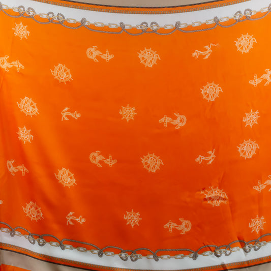 Eșarfă fină și deosebită cu efect mătase, imprimeu marinar vibes, 180 x 90 cm - Portocaliu