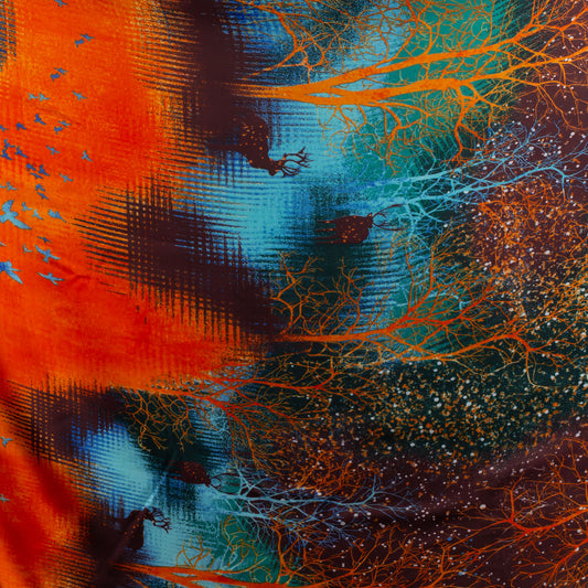 Eșarfă fină cu efect de mătase, imprimeu copacul nopții, 160 x 50 cm - Magical Sunset