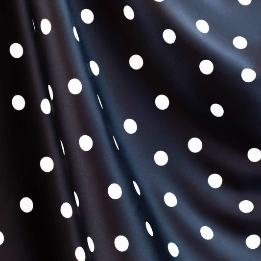 Eșarfă damă din satin, imprimeu cu buline mari, 70 x 70 cm - Negru, Alb