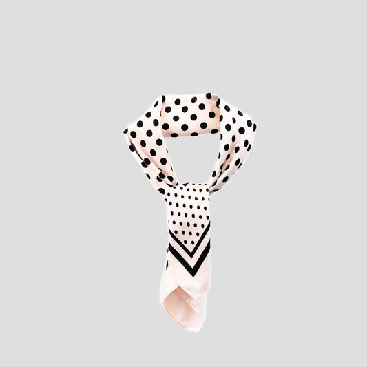 Eșarfă damă din satin, imprimeu cu buline mari și mici, 70 x 70 cm - Roz Deschis, Negru