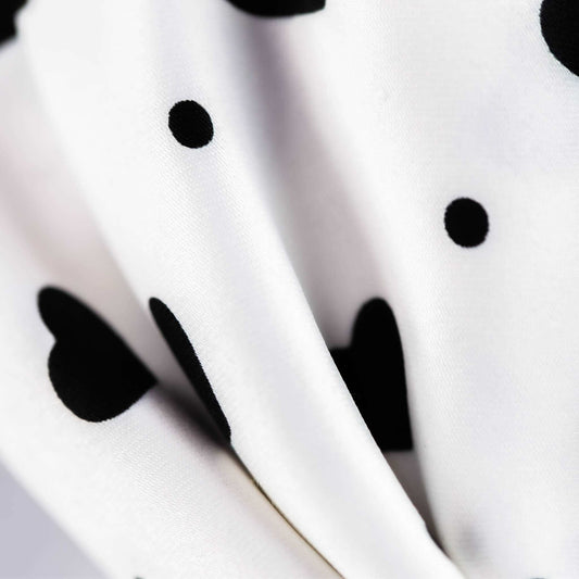 Eșarfă damă din satin, imprimeu cu inimi și buline mici, 60 x 60 cm - Alb, Negru