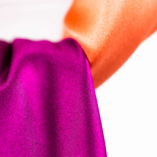 Eșarfă damă din satin, imprimeu cu secțiuni geometrice, 60 x 60 cm - Mov, Portocaliu, Albastru