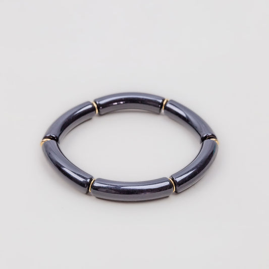 Brățară elastică cu pietre și secțiuni aurii - Mov