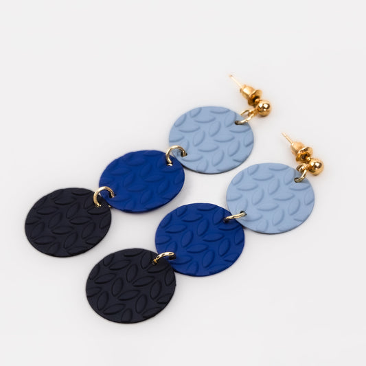 Cercei lungi cu cercuri embosate - Albastru Mix