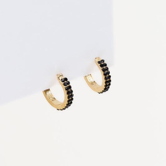 Cercei rotunzi mici cu pietre negre subtile - Auriu