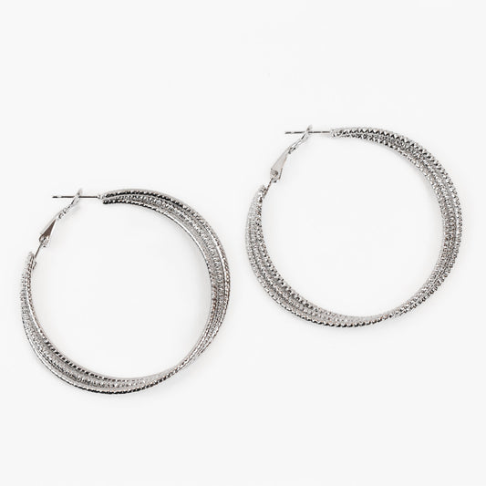 Cercei rotunzi texturați în 3 straturi împletite - Argintiu