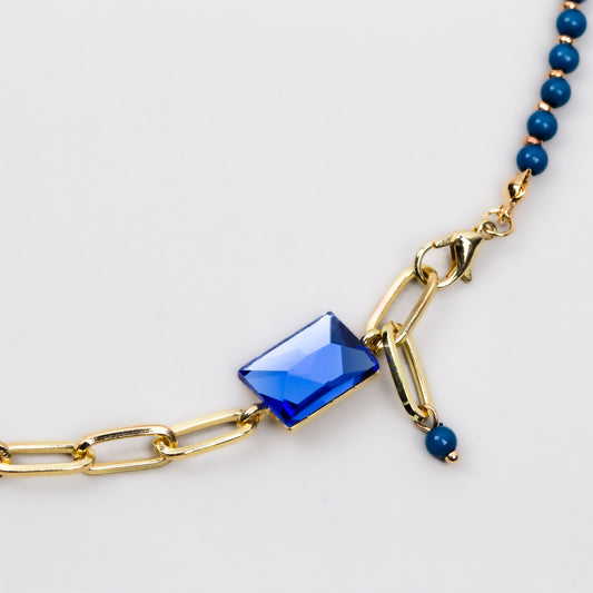 Colier cu mărgele mici și piatră - Auriu, Albastru