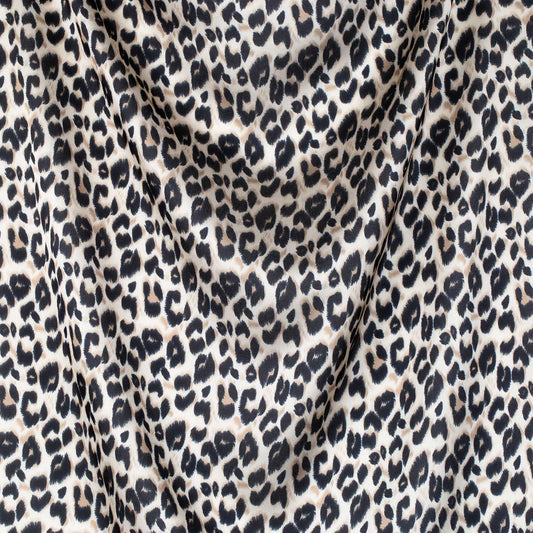 Eșarfă fină cu efect de mătase, animal print felina, 60 x 60 cm - Bej, Negru