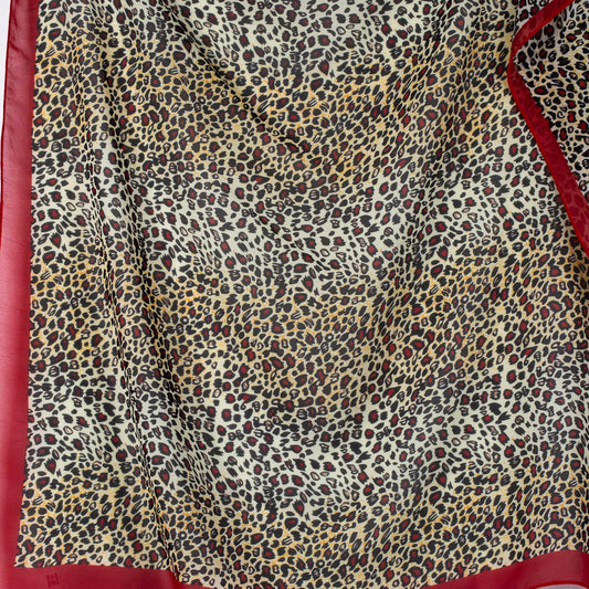 Eșarfă fină cu efect de mătase, animal print forme mici, 70 x 65 cm - Roșu, Bej, Maro