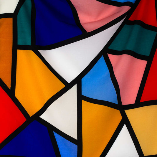 Eșarfă damă din satin, imprimeu cu secțiuni geometrice, 55 x 55 cm - Multicolor