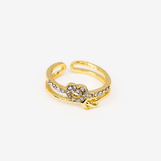 Inel reglabil dublu cu noduri și ștrasuri - Auriu