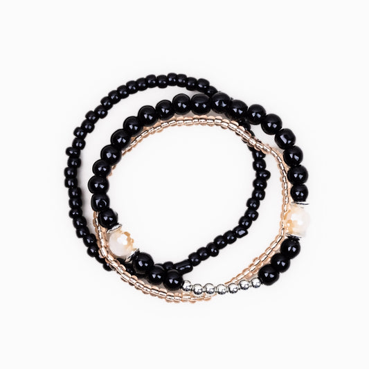 Set brățări elastice diversity cu mărgele și biluțe, 3 buc - Negru