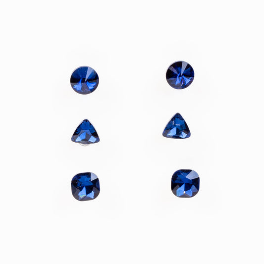 Set cercei mici cu pietre și forme geometrice, 3 perechi - Albastru închis