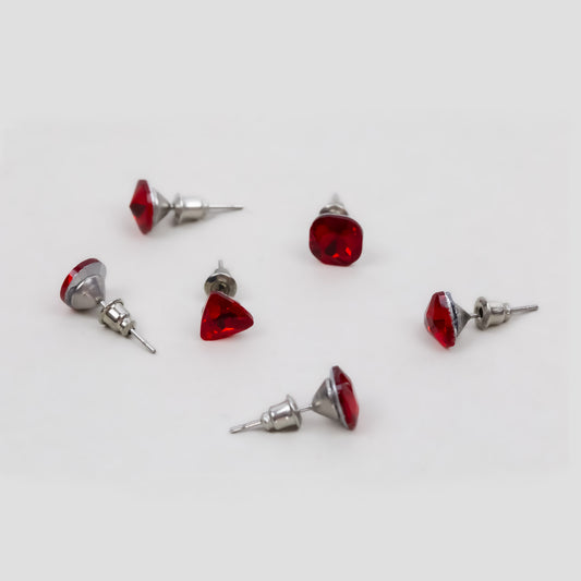 Set cercei mici cu pietre și forme geometrice, 3 perechi - Roșu
