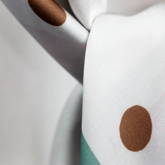 Eșarfă damă din satin, imprimeu cu buline și margini dungate, 70 x 70 cm - Alb, Verde, Maro