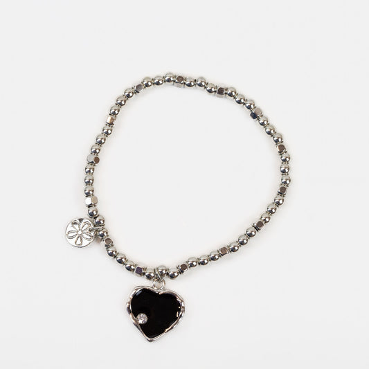 Brățară elastică cu mărgele mici și charm-uri cu inimă și bănuț - Argintiu