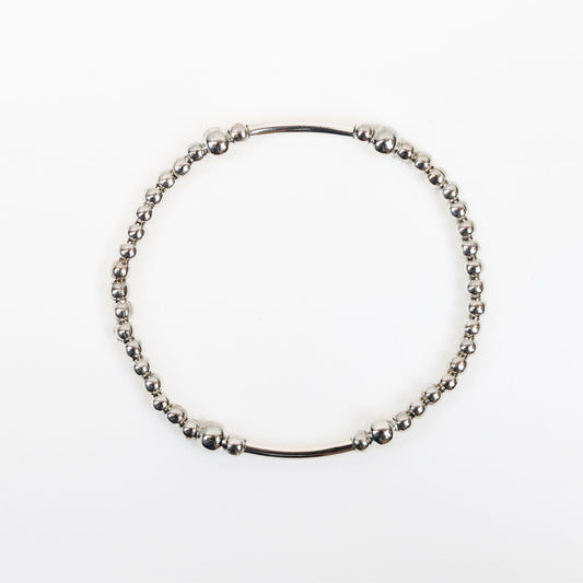 Brățară elastică cu mărgele mici și secțiuni cilindrice - Argintiu