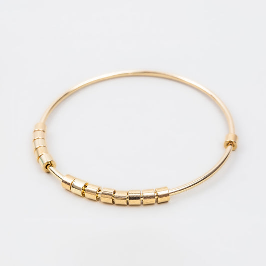 Brățară elastică cu pietre și secțiuni aurii - Champagne