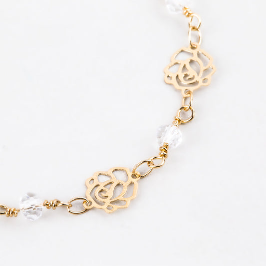 Brățară reglabilă cu charm-uri în formă de trandafir și pietre mici - Auriu