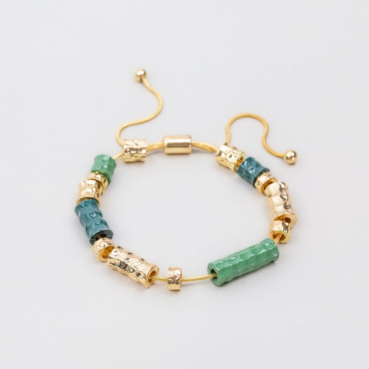 Brățară reglabilă cu elemente texturate culisante pe lanț cu șnur - Auriu, Verde