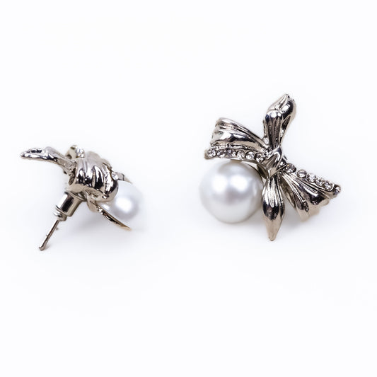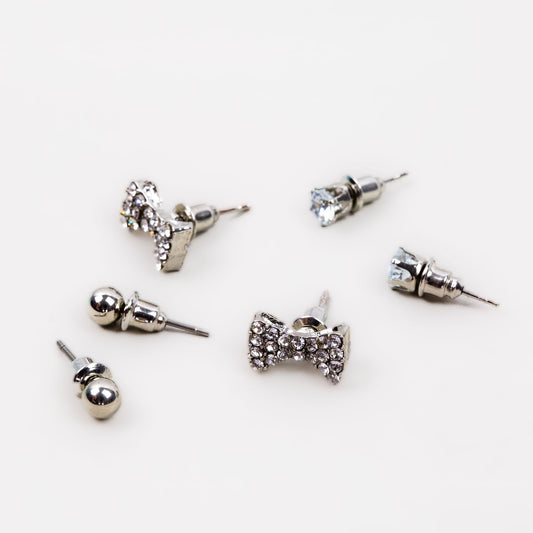 Set cercei mici cu fundiță și ștrasuri, 3 perechi - Argintiu