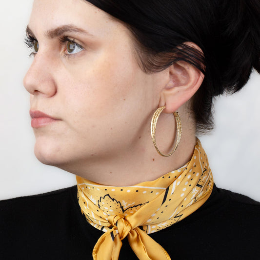 Cercei rotunzi texturați în 3 straturi împletite - Auriu